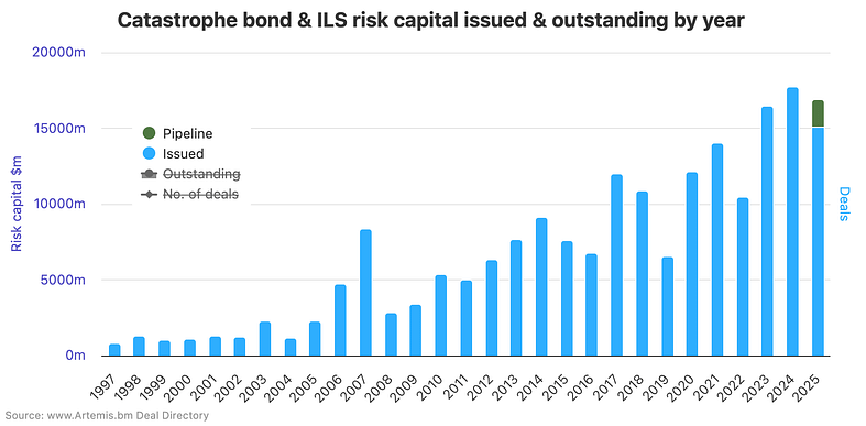 So, with a new annual record for the amount of catastrophe bond issuance tracked by Artemis, across Rule 144A and private cat bond or cat bond lite deals, now standing at just $815 million below the annual record from 2024, it is very hard to think 2025 will not beat that.