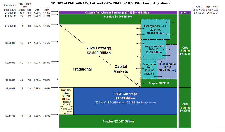 But, we suspect there is also an allowance for softer pricing in the property catastrophe reinsurance space, as well as softer pricing in the catastrophe bond market, which may help Citizens reign in some of its risk transfer expenses while still meeting its protection goals in 2025.