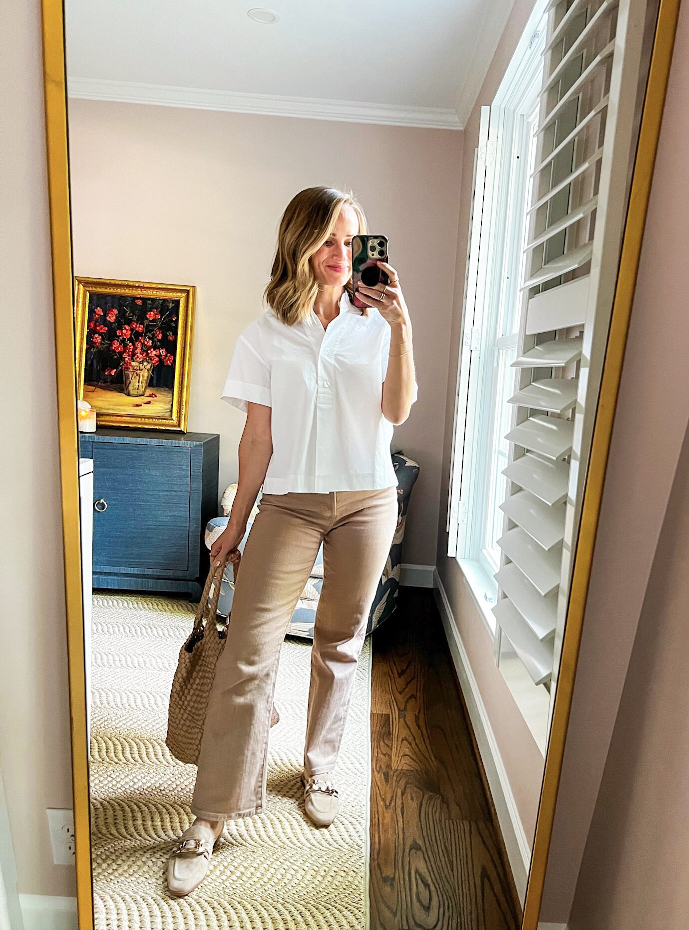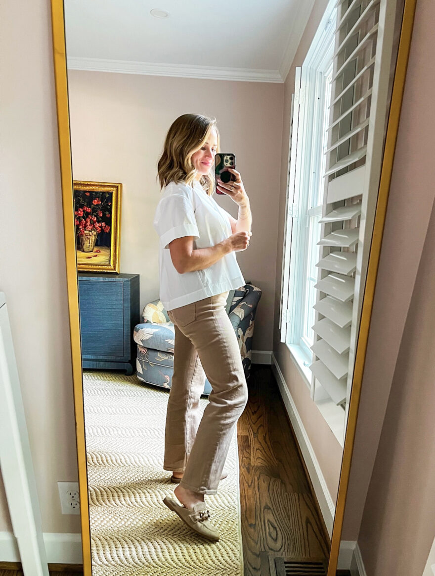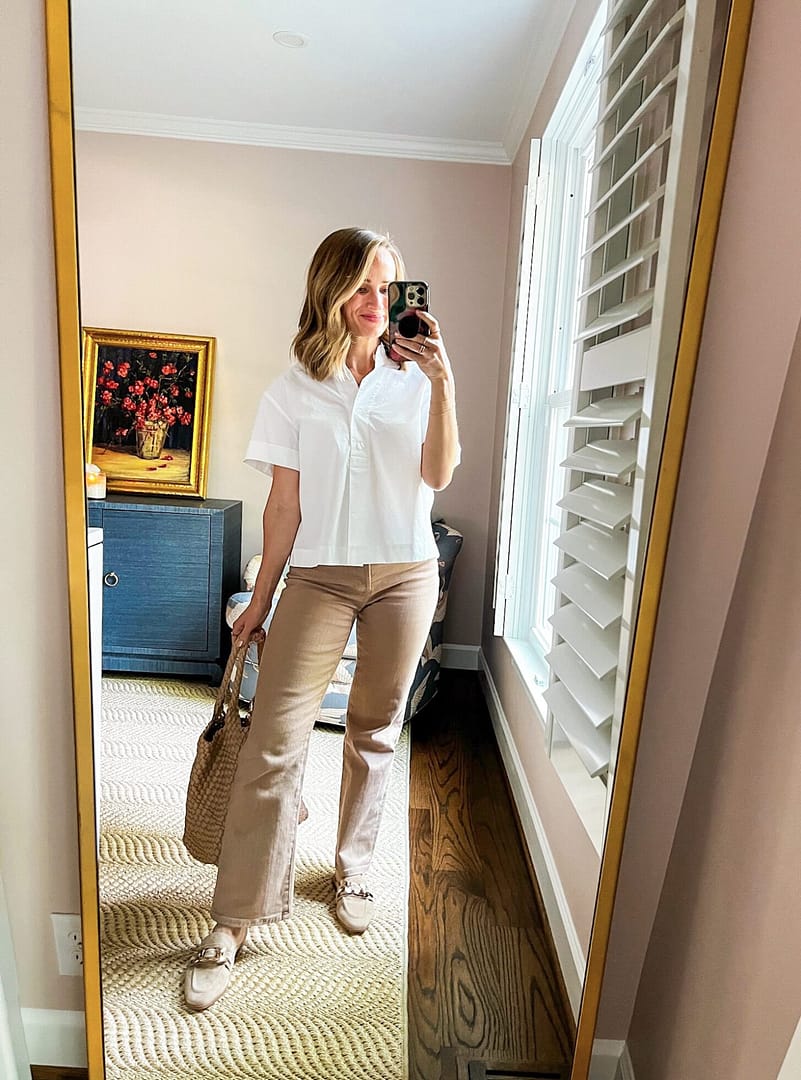 These are your Monday-to-Friday basics that go with everything. These are budget-friendly options, but if you want to invest in timeless tops that will last you for years, check out my favorite Tuckernuck tops.