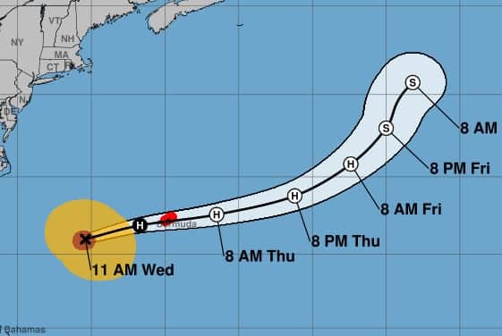 The National Hurricane Center said in its latest update on hurricane Imelda, “Air Force Hurricane Hunter aircraft data indicate that maximum sustained winds have increased to near 100 mph (155 km/h) with higher gusts. Some additional strengthening is possible before Imelda passes close to Bermuda tonight. Imelda is then expected to become an extratropical low on Thursday, with gradual weakening forecast thereafter. Hurricane-force winds extend outward up to 60 miles (95 km) from the center and tropical-storm-force winds extend outward up to 230 miles (370 km).”