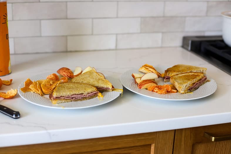 I knew getting blood sugars up and making an allergy sniffle soother would at least help get us on the right track. So I made my go-to sore throat soother of hot water, fresh lemon, a generous squeeze of honey, and throat coat tea. I made grilled ham and cheese sandwiches, too, and had both waiting on them when they got back. While eating and sipping, I read another chapter of The Hobbit and I could immediately see the bad attitudes fading. Maybe it was just the math and science sections being done for the day, but I like to think it was the food and mom’s wonderful company 😉