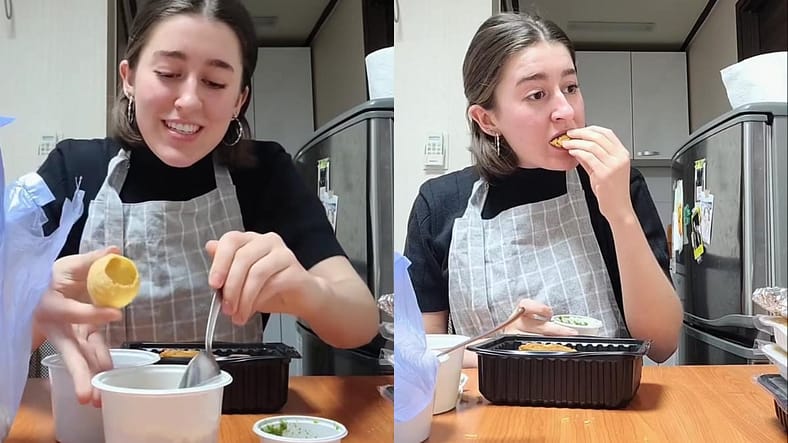 Videos of a vlogger trying Indian dishes in South Korea have caught the attention of many foodies online. Digital creator Yiz (pwark.yiz) uploaded 2 reels showing her tasting various delicacies she ordered from an Indian restaurant in Seoul. She explained that this was one of the concepts most requested by her followers. She asked people for recommendations, and she received a lot of suggestions about which foods to try. She reveals that this is only her third time ever eating Indian food. In the first video, she tries the appetisers. When she starts opening the takeout containers, she exclaims that the food “smells amazing.”