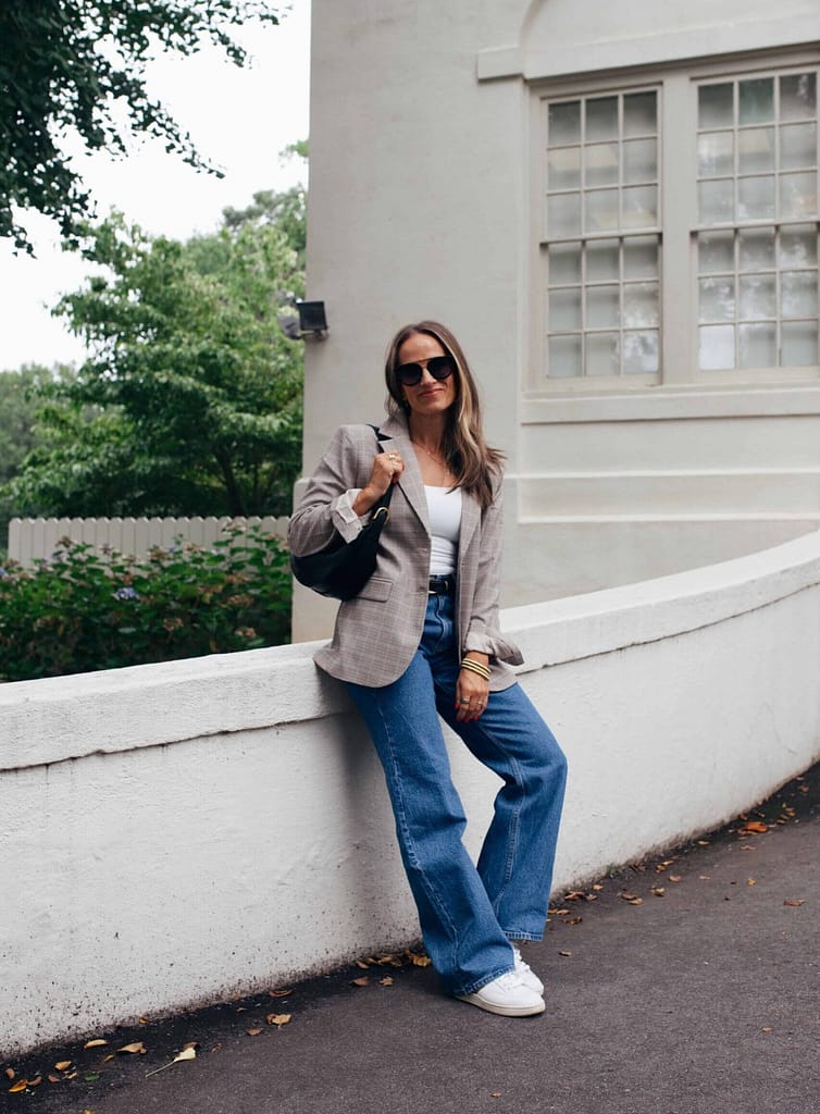 - Throw an oversized blazer over a t-shirt dress or sundress with sneakers for a laid-back, chic outfit.