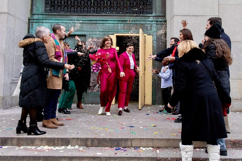 Eryka: We were planning to get married in August 2026 in the lake town where Rachel grew up, but after the 2024 presidential election, we felt it was important to get our ducks in a row before the inauguration in January 2025. We had two months.